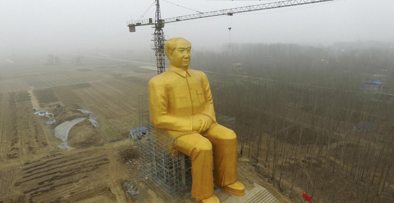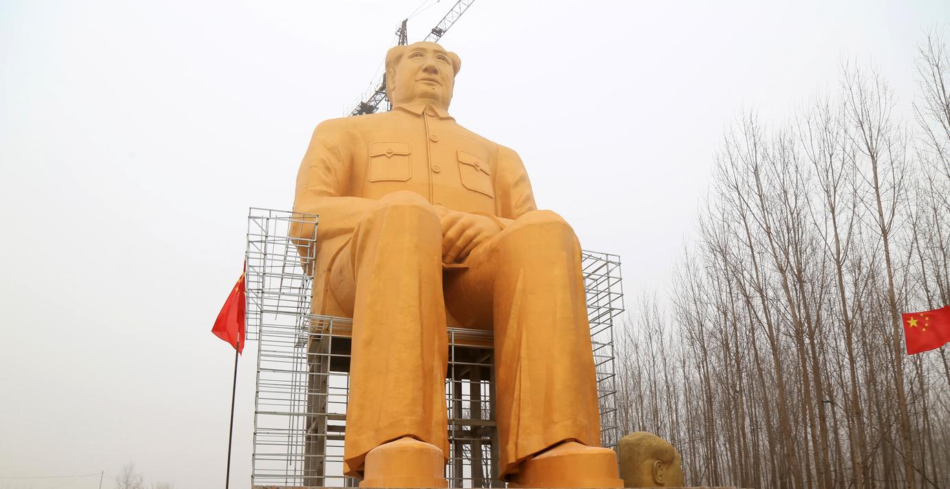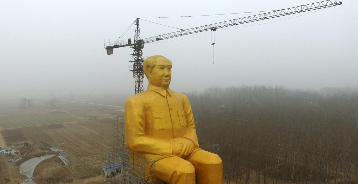 Maostatyn som var 36,6 meter hög, restes av en grupp kapitalister, till en kostnad av motsvarande 3,9 miljoner kronor.