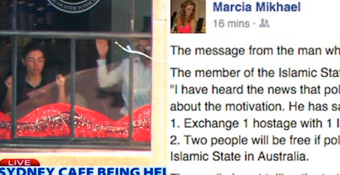 Gisslantagaren i Sydney tvingade personer på kaféet att spela in videomeddelanden och skriva på Facebook, rapporterar ABC News. 42-åriga gymägaren Marcia Mikhael säger bland annat i ett meddelande att: