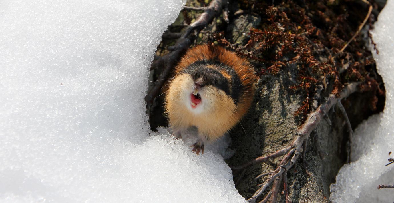 Lämmeln är en viktig föda för den utrotningshotade fjällräven. Årets första rapporter tyder på en positiva utveckling i Stekenjokksområdet, där man hittat flera fjällrävslyor.