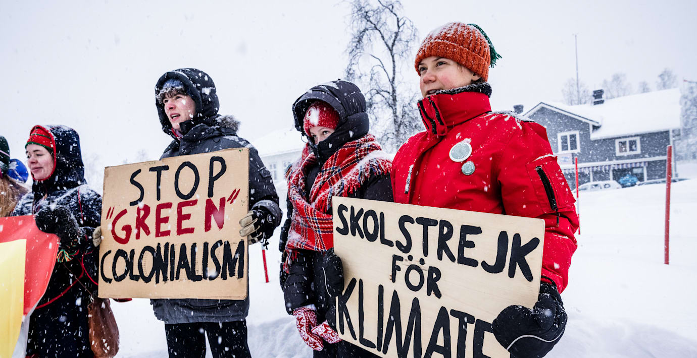 – Sverige brukar vara mån om att framstå internationellt som ett land som tar täten för mänskliga rättigheter och i klimatpolitiken. Men det är snarare tvärtemot, säger Greta Thunberg, som är på plats för att demonstrera mot gruvan till, SVT Sápmi.