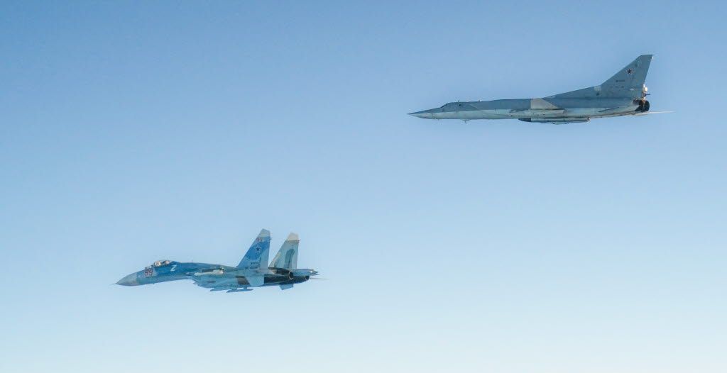 De ryska bombplanen eskorterades av två stridsflyg.