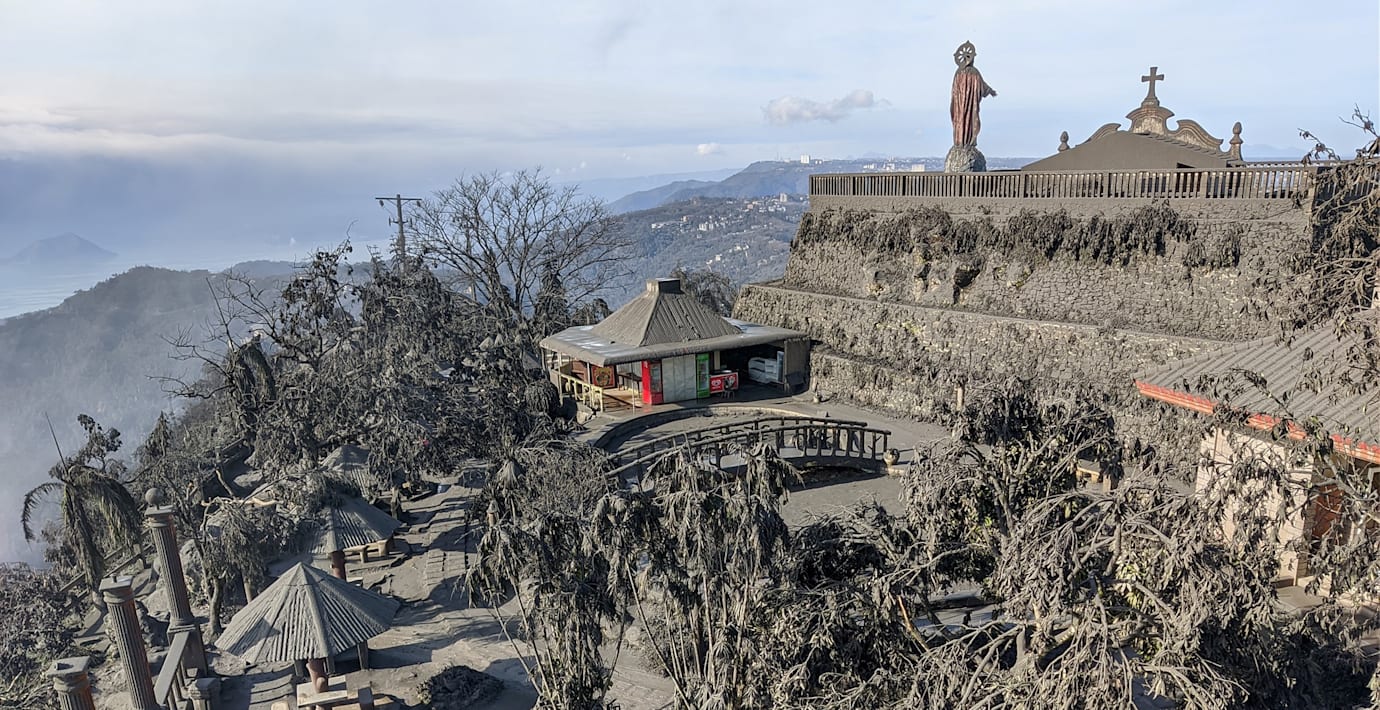 Askan lägger sig i området söder om Filippinernas huvudstad Manila efter att vulkanen Taal vaknat till liv, rapporterar Reuters. Bilder från platsen visar hur gröna träd och buskar har förvandlats till svart växtlighet.