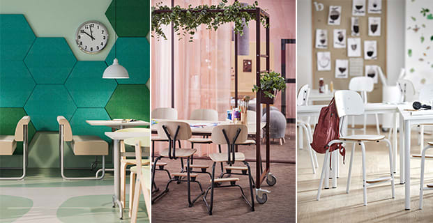 Med en vit eller ljusgrå grund minskar visuell trötthet och koncentrationen främjas, speciellt under längre studieperioder. Färgerna skapar en känsla av struktur och reflekterar ljus som gör oss pigga samtidigt som det hjälper till att skapa tydlighet i klassrummet.
