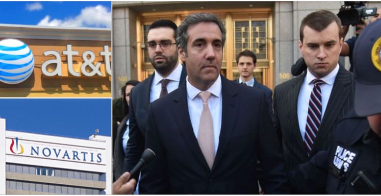 Bland företagen finns läkemedelsbolaget Novartis och telekomjätten AT&T, som båda har skrivit kontrakt där det framgår att Cohen ska agera som rådgivare. AT&T gav Cohen ett arvode på 600 000 dollar, trots att fastighetsjuristen Cohen aldrig har arbetat inom inom telekom. Novartis, å sin sida, kom överens om att betala nära motsvarande 900 000 kronor i månaden till Cohen, som de endast fick till ett enda möte med, där det enligt Novartis blev uppenbart att Cohen inte var insatt i området.