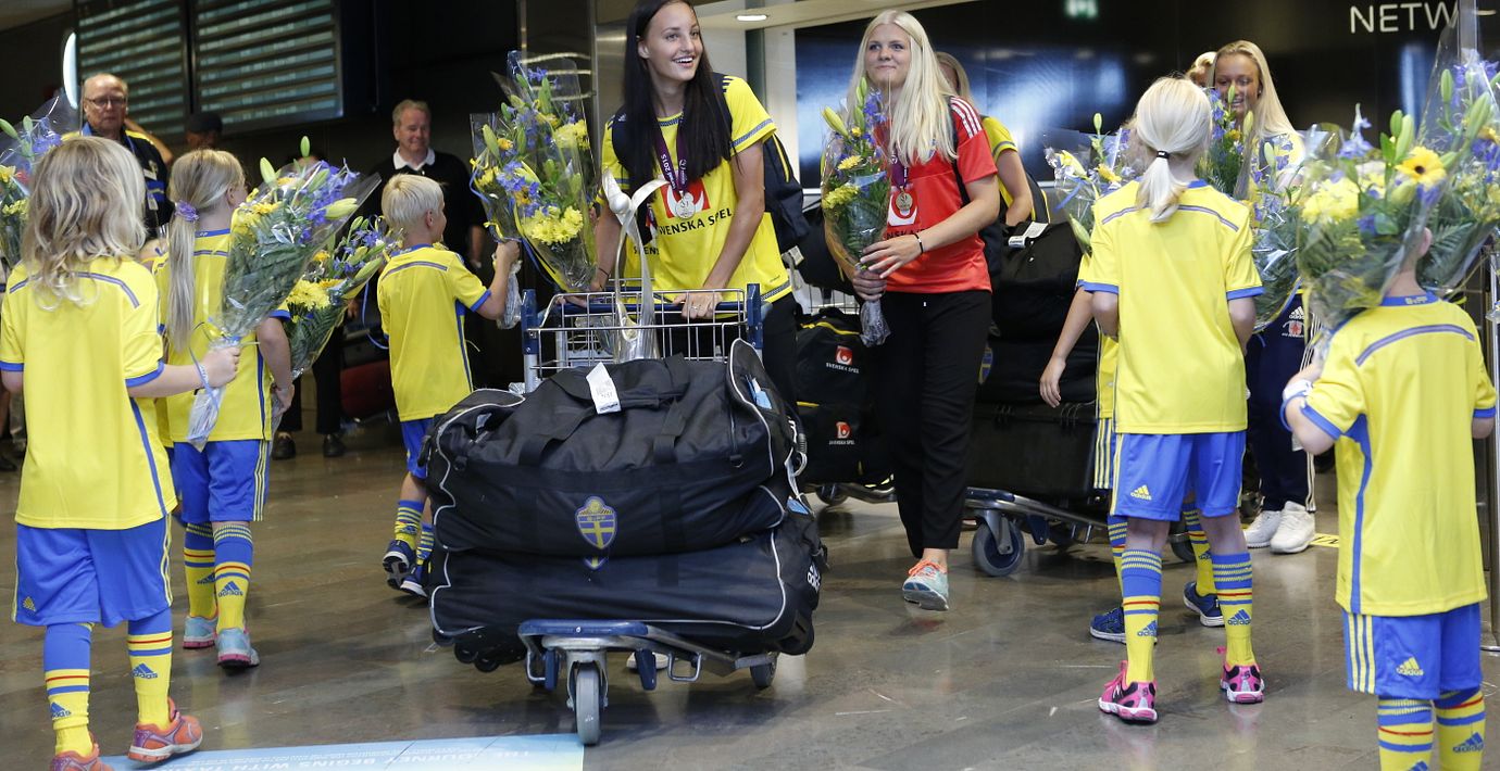 De svenska U19-hjältarna har precis landat på Arlanda med EM-guldet i bagaget. Där ska de först hälsas välkomna i ankomsthallen och sedan firas under en mottagning i Sky City, skriver TT. Sedan tidigare är det känt att det inte blir något firande i Kungsträdgården.