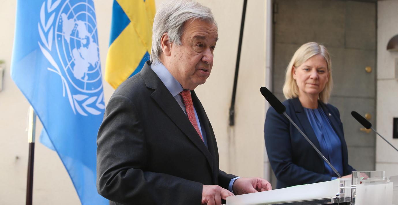 Guterres tog också upp den matkris som hotar många av världens länder i och med Rysslands invasion av Ukraina, och varnade för att ”en perfekt storm” kan drabba fattiga länders ekonomier.