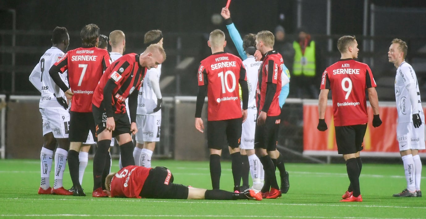 Allsvenska nykomlingarna BP skrällde mot Häcken och vann med 2–0, skriver Sportbladet. De favorittippade göteborgarna fick se både Alexander Faltsetas och Daleho Irandust utvisade och tränaren Andreas Alm uppvisad på läktaren. Falsetas fick rött kort direkt efter att ha kastat sig med dubbarna före i en duell med mot Sandberg Magnusson, skriver Sportexpressen.