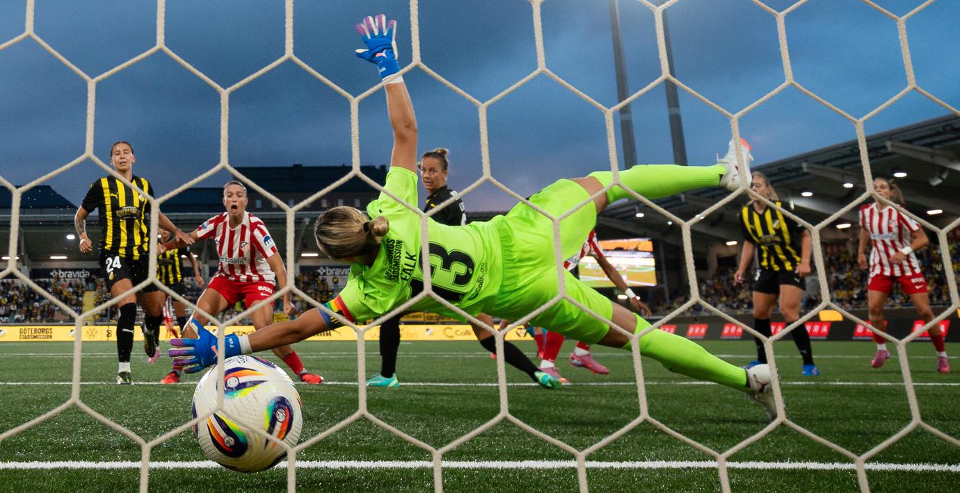 Häckenmålvakten Jennifer Falk rasar efter kvällens förlust mot Atlético Madrid i Champions League-kvalet, rapporterar Fotbollskanalen.