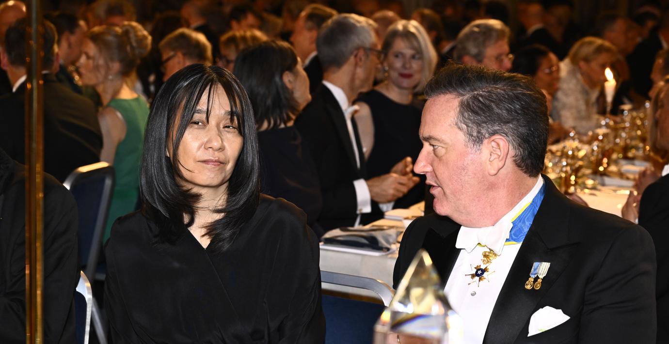 Vid något tillfälle fångade tv-kamerorna författaren i ett ögonblick där hon såg ut att sitta knäpptyst bredvid finansmannen, men i en intervju med DN ger Han Kang en mycket positiv bild av sin bordsherre.