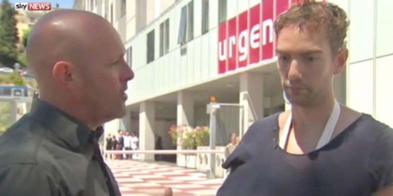 Massvis med människor befann sig på strandpromenaden i Nice när den vita lastbilen plöjde fram och dödade minst 84 människor. En av dem som överlevde attacken var britten Laurence Olding. För Sky News berättar Olding att han var på väg hem till sin lägenhet när han plötsligt hörde hur folk på strandpromenaden började skrika.