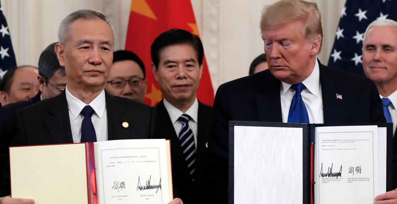 Liu He och Donald Trump. (Evan Vucci / TT NYHETSBYRÅN)
