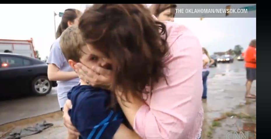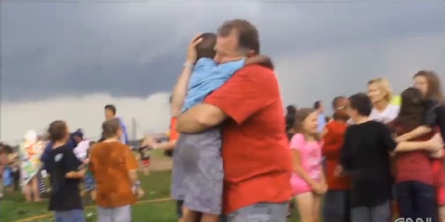 Bilderna visar hur små och stora barn återser sina föräldrar för första gången sedan tromben gått förbi deras skola Briarwood Elementary. Alla elever på den skolan överlevde till skillnad från dem som sökt skydd i Plaza Towers Elementary School. Där har minst sju barn dött, rapporterar CNN.