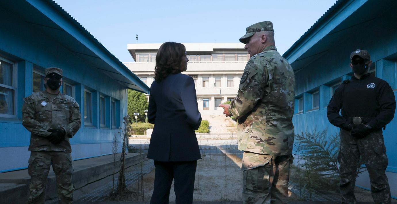 – Det är så nära, sa Harris när hon med kikare blickade ut över området som skiljer Sydkorea från grannen Nordkorea, enligt The Guardian.