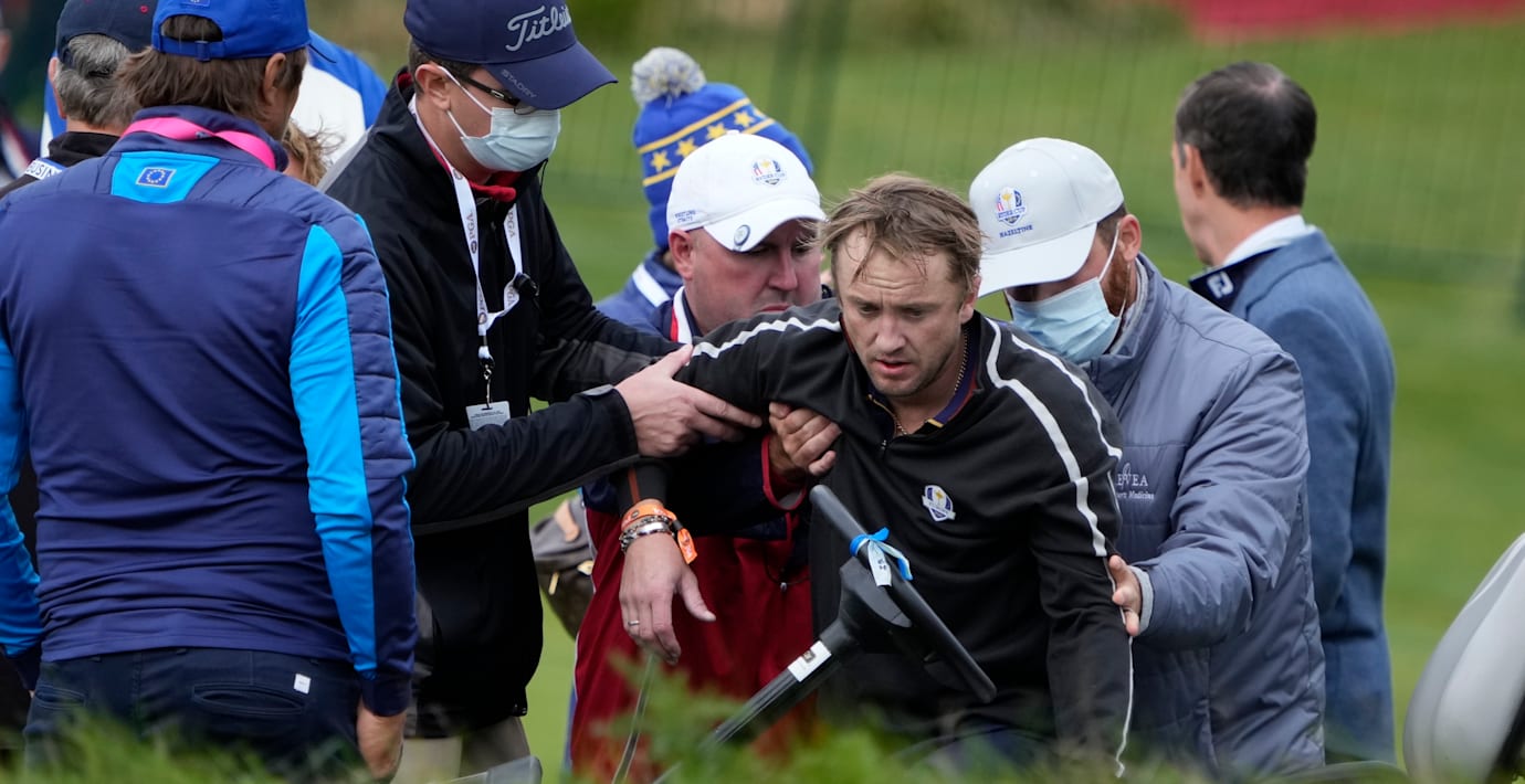 34-åringen var vid medvetande när han fördes till sjukhus, men The Guardian skriver att han såg blek och skakig ut när han fick hjälp upp i en golfbil. Enligt AFP är det inte fastslaget vad som låg bakom kollapsen.