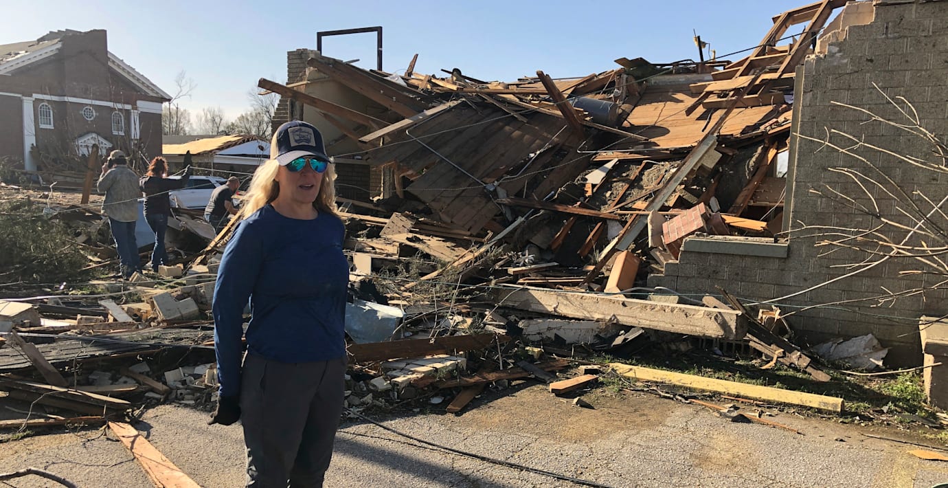 Minst 18 personer har dött till följd av de kraftiga tornador som under fredagen drog in över amerikanska mellanvästern och södern, rapporterar AP. Wynne i östra Arkansas har drabbats särskilt hårt och Heidi Jenkins frisörsalong är en av alla byggnader i ruiner.