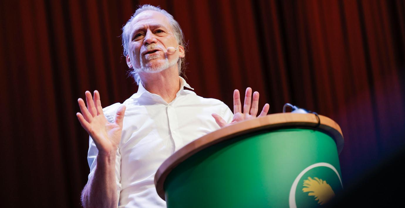 – Miljöpartiet vill förändra förutsättningarna för samhället. På det sättet är vi faktiskt revolutionära, säger Helldén och möts av applåder.