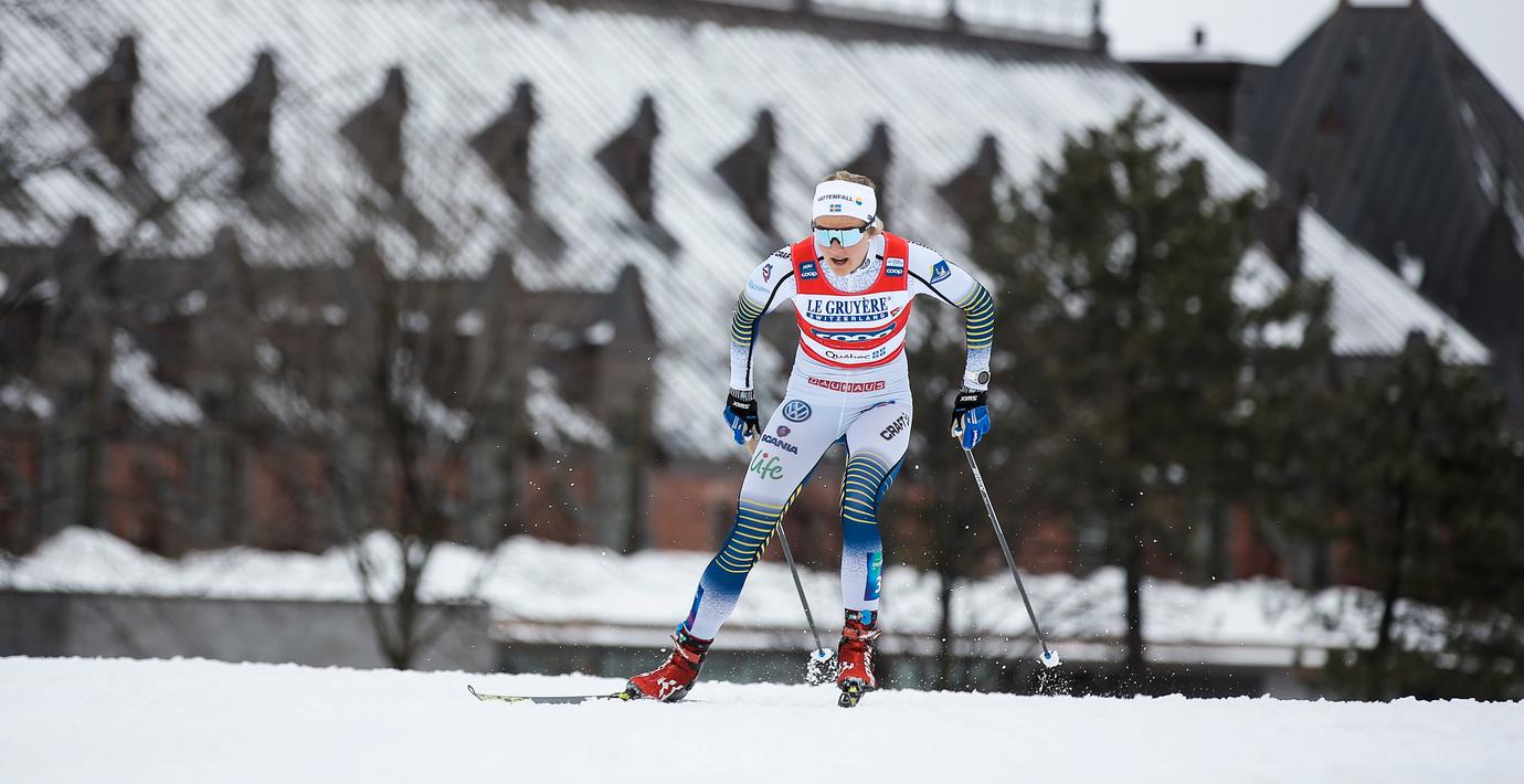 Skidstjärnan Stina Nilsson har säkrat totalsegern i sprintvärldscupen som första svenska kvinna någonsin. Redan efter kvartsfinalen under tävlingen i kanadensiska Quebec hade Nilsson säkrat ett så stort poängmässigt försprång att det stod klart att hon vann cupen så länge hon inte blev diskad.