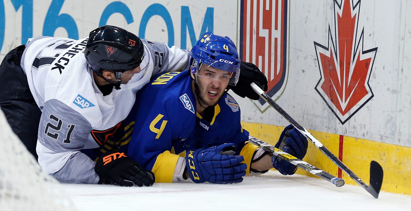 – Hans klubba är som ett järnspett. Han är extremt stark med pucken. Man får vara med när han kommer och inte ge honom något läge att ta pucken, för det är han grym på, säger Hjalmarsson till TT.