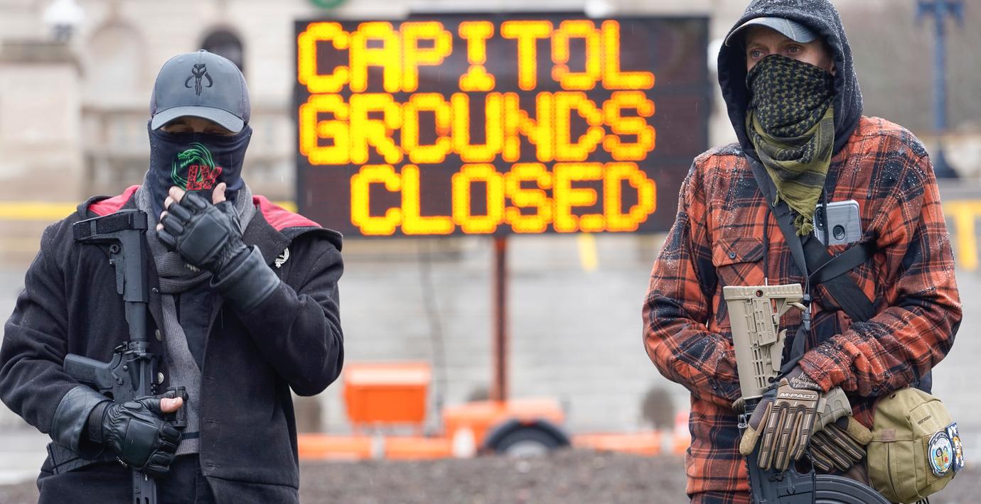 Medlemmar ur den högerextrema Boogaloo-rörelsen gav sig ut på gatorna i Michigans delstatshuvudstad Lansing under söndagen, rapporterar flera medier.