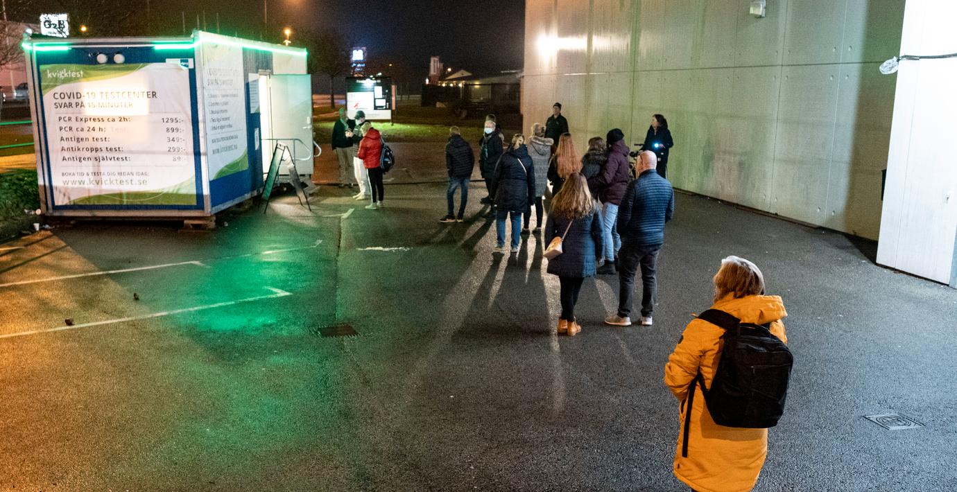 Arkivbild: Kö för covidtest vid ett köpcentrum i norra Lund. (Johan Nilsson/TT)