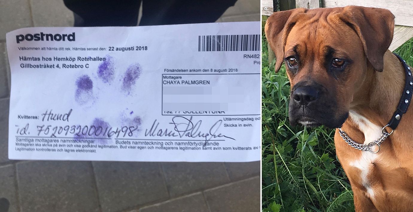 När hunden Chaya fick ett paket att hämta ut på ett utlämningsställe i Sollentuna var det nära att det inte gick – på grund av byråkratiska regler, skriver Aftonbladet. Det tog tvärstopp när Chaya, som paketet var skickat till, inte hade någon legitimation varpå matte Marie Palmgren kom på att hon hade ett registreringsbevis från Jordbruksverket.