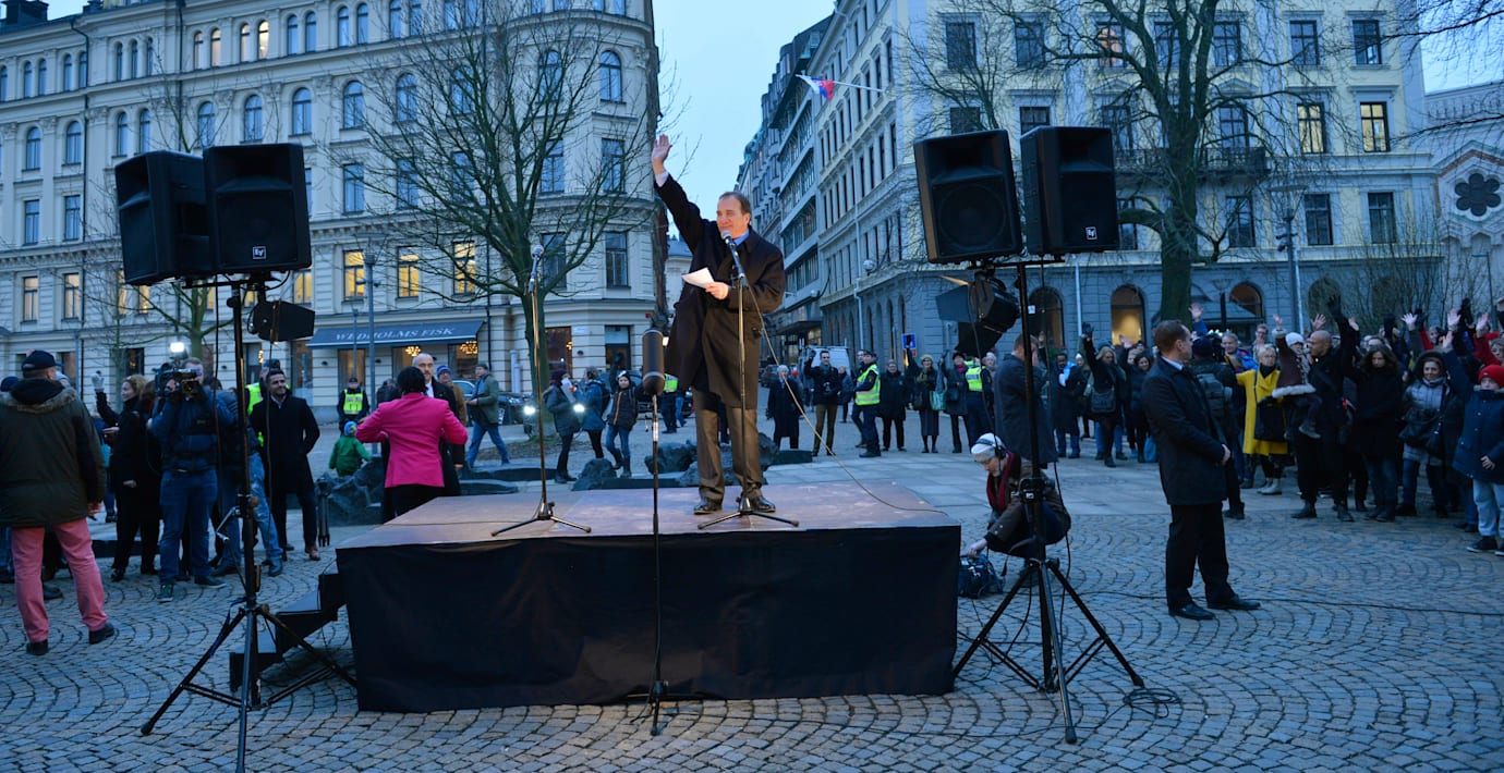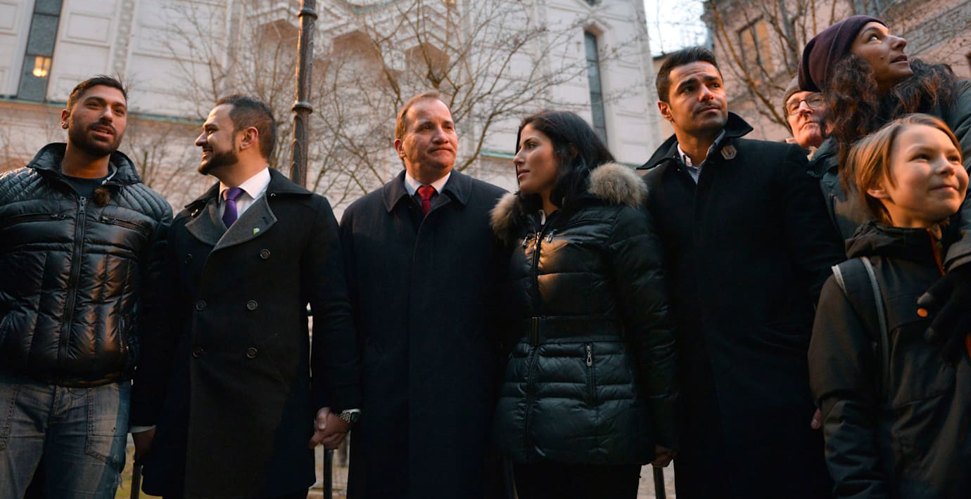 – Nu är det upp till oss att stå upp för religionsfriheten och aldrig låta hatet vinna makten över våra liv, sa Löfven från scenen.
