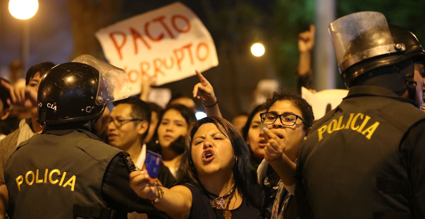 Demonstranterna ropade ”förrädare” och ”benådningen måste dras tillbaka” samtidigt som man visade upp bilder på människor som blev offer för de blodiga aktioner som genomfördes för att slå ner upprop under Fujimoris styre mellan 1990 och 2000.