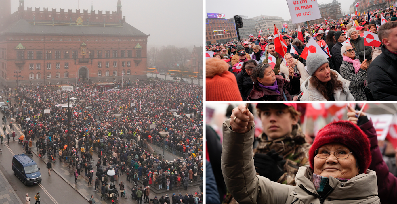 Tusentals personer har samlats på Rådhusplatsen i Köpenhamn för att demonstrera mot USA:s och Donald Trumps Grönlandshot.