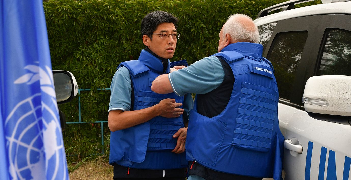 Enligt den ryska statliga nyhetsbyrån Interfax kom delegationen i en kortege med nio bilar fram klockan 13.15 svensk tid. De rapporterar att det hördes skott och explosioner i områden mindre än en timme innan delegationen kom dit.