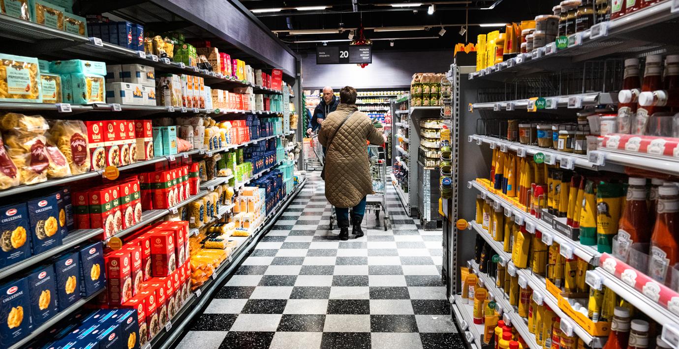 Hyllor med varor i Ica Kvantum i Sickla köpkvarter. (Claudio Bresciani / TT / TT Nyhetsbyrån)