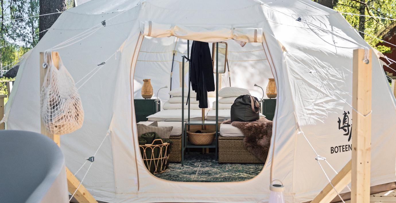 Uppdrag: Planera och implementera ny inredning i rum, glampingtält, lobby, restaurang och uteplats.