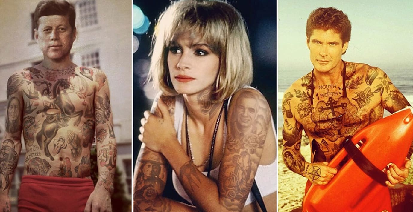 Dem amerikanska konstnären Cheyenne Randall har med hjälp av Photoshop ritat in tatueringar på ett antal levande och döda kändisar.