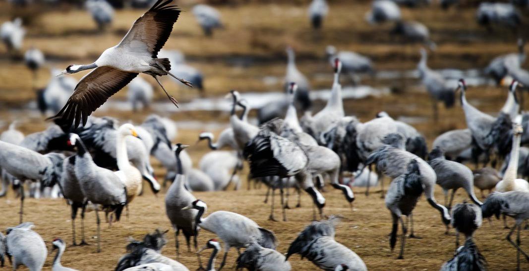 Såhär års brukar turister från bland annat Tyskland flockas vid sjön för att skåda tranorna.