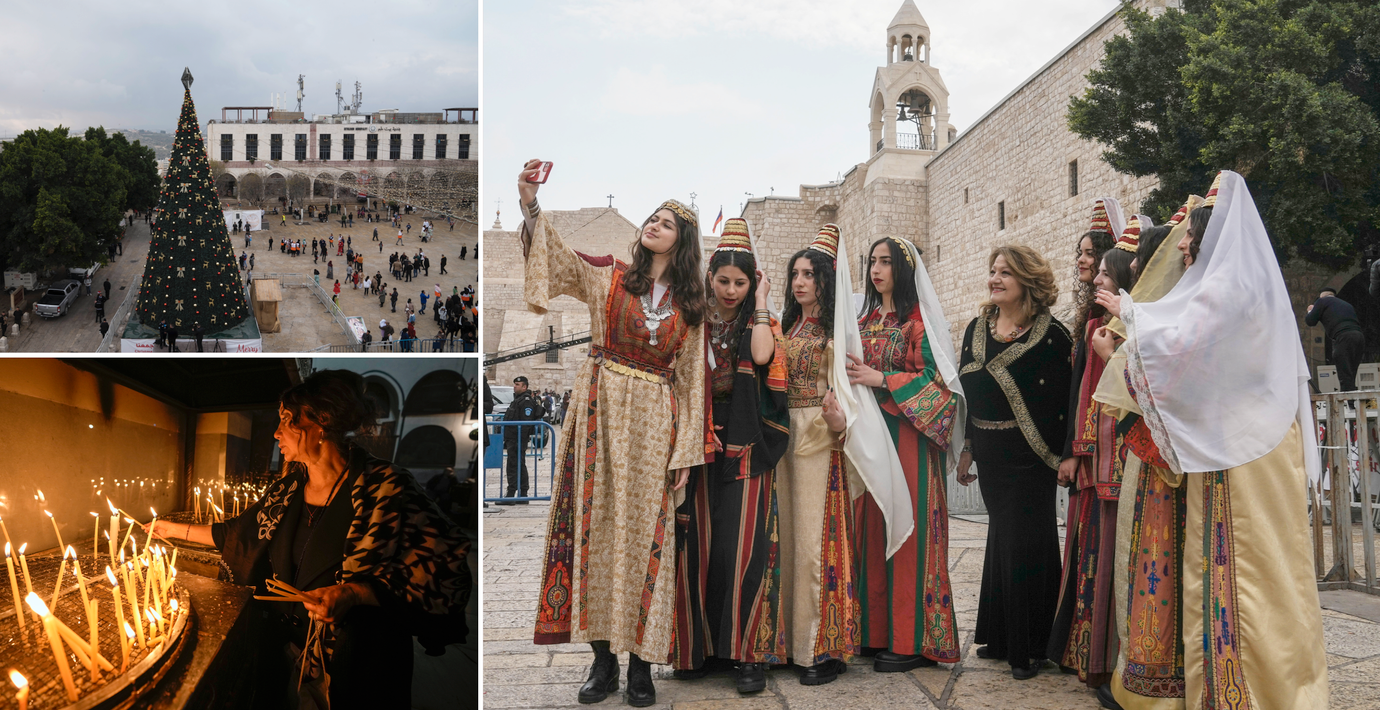 Julen återvänder till den bibliska staden Betlehem, skriver AP. Det är första gången på flera år som invånarna kan räkna med ett julfirande utan större påverkan från covid-19.