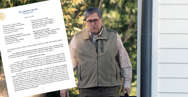 ”Men medan rapporten inte drar slutsatsen att presidenten har begått ett brott så friar den honom inte”, skriver Barr i brevet och citerar Robert Mueller. Det gäller alltså anklagelserna om att presidenten ska ha lagt sig i och försökt påverka utredningen.
