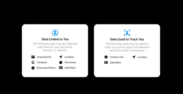 Apple inför även märkningar av apparna som visar hur mycket data de ber om redan innan man laddat ned och installerat dem. Det kommer inte heller att gå att spåra användarna eller dela deras data med tredje part om de inte på förhand medgivit saken. Undantag görs för appar som inte kan identifiera personer, eller om spårning används för att skydda mot exempelvis bedrägerier.