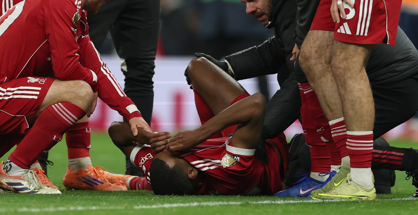 26-åringen tvingades avbryta matchen och fick hjälp av planen. Liverpool vann med 2–1.