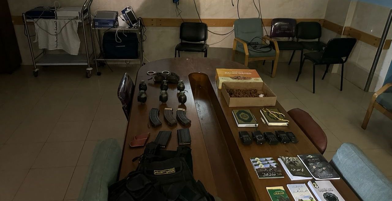 IDF:s talesperson Daniel Hagari har på X publicerat klipp och bilder som påstås visa vapen, ammunition och granater på sjukhuset. Därtill ska teknologisk utrustning ha hittats.