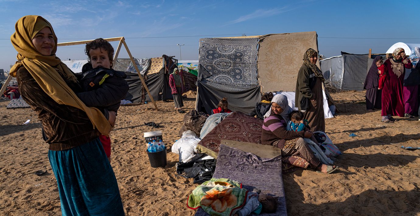 Det 20 kvadratkilometer stora området Muwasi är ett provisoriskt tältläger dit allt fler människor nu söker skydd. Men förhållandena är usla, enligt nyhetsbyrån. Det finns inget rinnande vatten, nödhjälp eller tillräckligt skydd mot den kommande kyliga och regniga vintern. En del personer har inte ens nog material för att konstruera ett tält.
