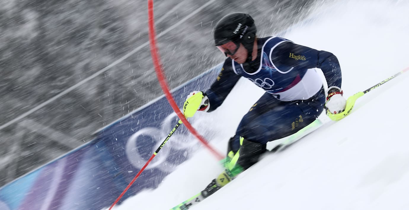 Svenske Kristoffer Jakobsen åkte ur direkt i måndagsförmiddagens OS-slalom.
