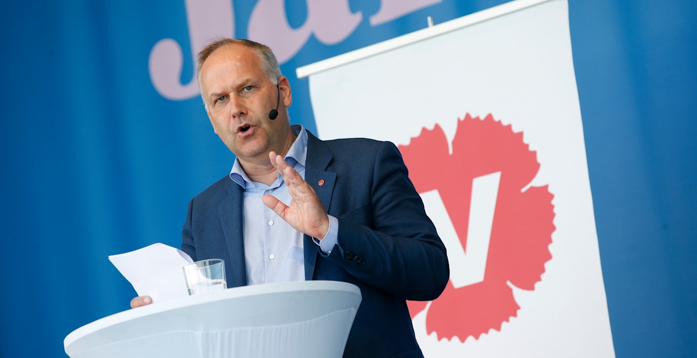 Den enda motkraften mot detta är vänsterpolitik, sa Sjöstedt, och fortsatte med att varna för en valresultat som möjliggör att M-ledaren Ulf Kristersson kan ta makten med hjälp av SD efter valet i höst.