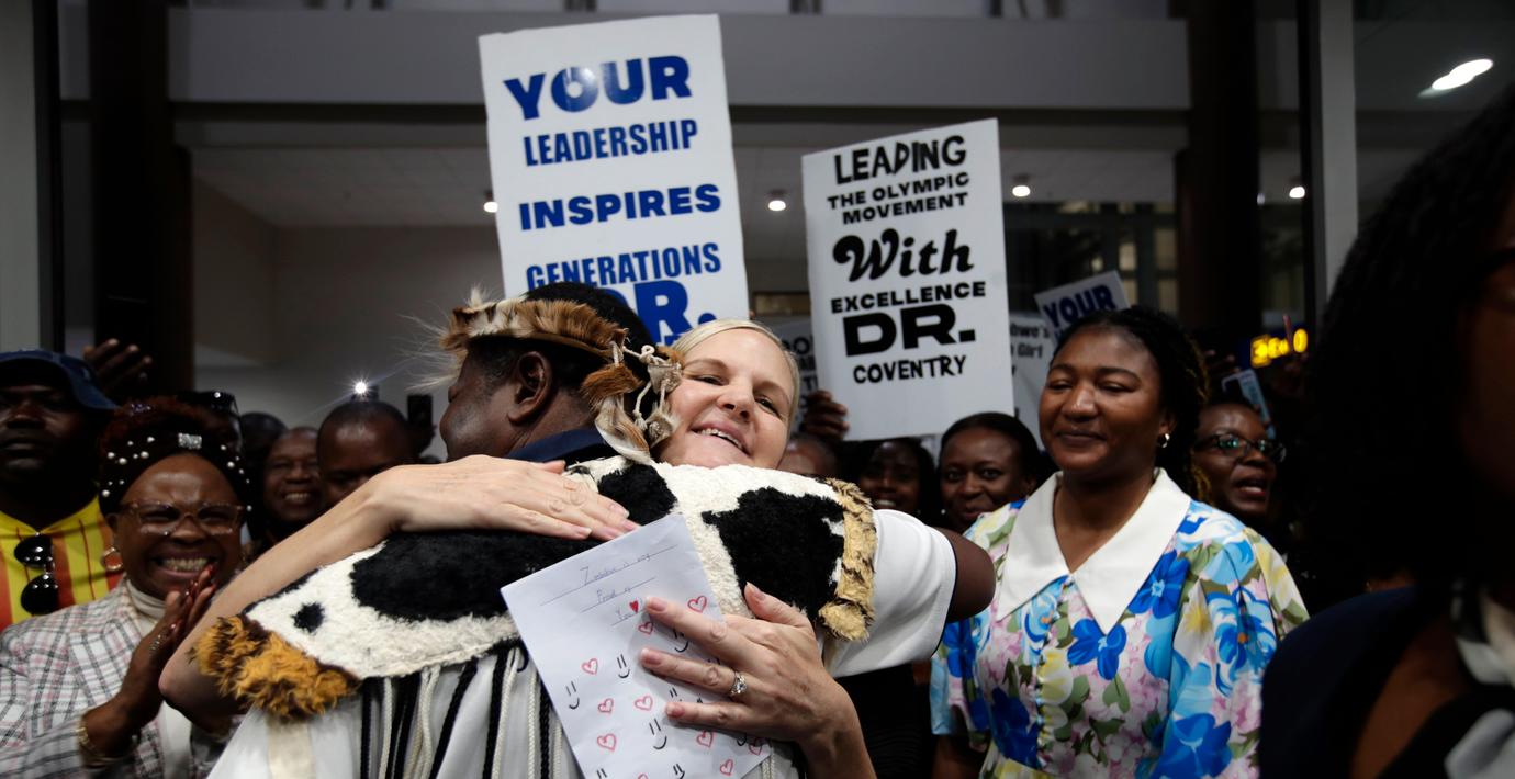 Coventry är den första kvinnan och den första afrikanen att inneha posten som brukar kallas den mäktigaste i sportvärlden. Bland de som mötte Coventry när hon återvände fanns ministrar, idrottsstjärnor och andra som ville hylla landets nye sporttopp.