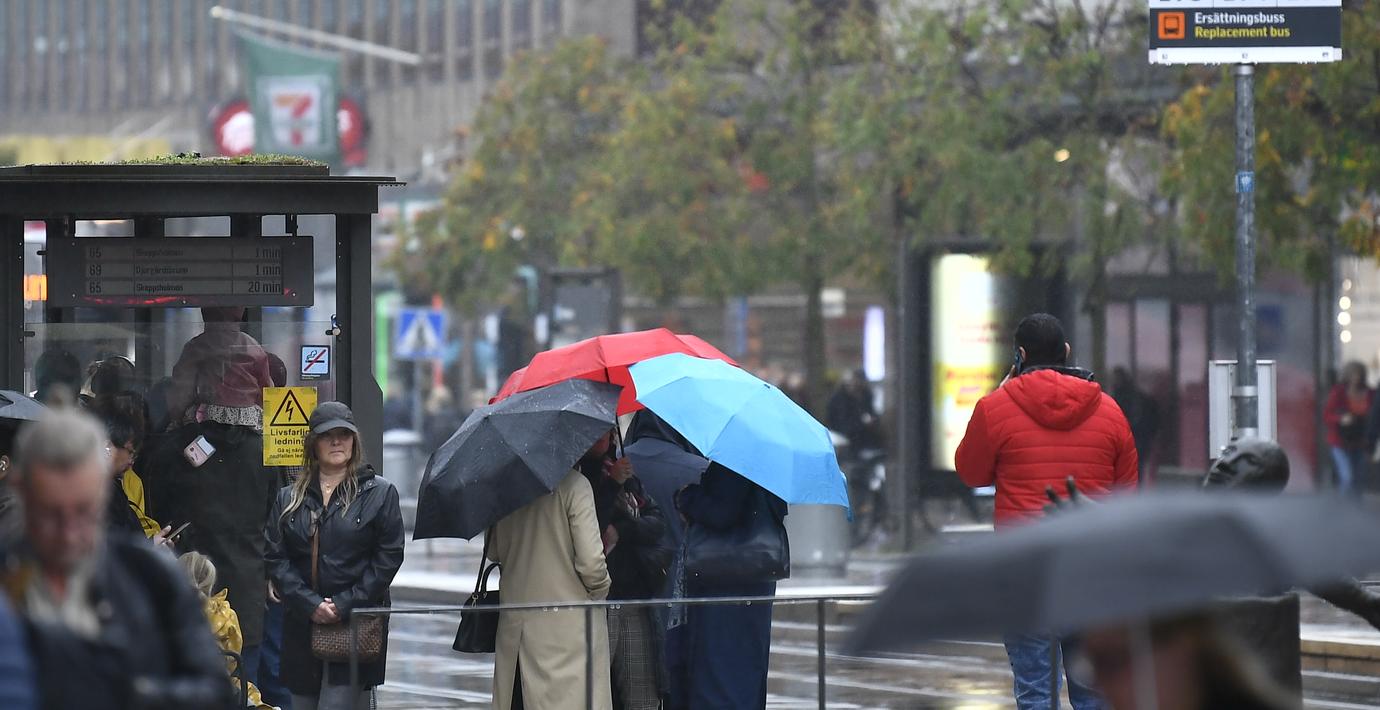 Tidigt på tisdagsmorgonen slog regnet ner i Stockholm. Där har kollektivtrafiken drabbats av stora vattenmassor och flera linjer har ställts in, rapporterar P4 Stockholm. I tunnelbanan är det stora störningar på röda linjen efter att ett träd fallit över spåret, skriver Aftonbladet.