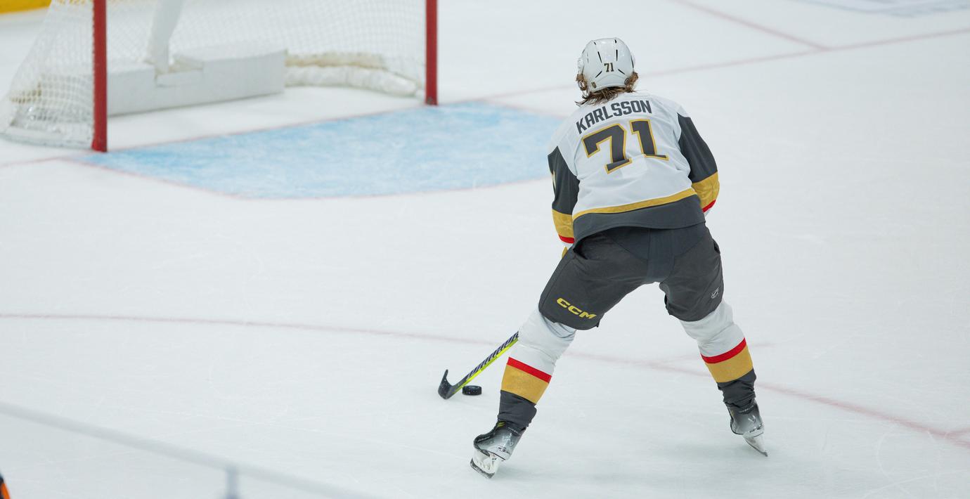 Med bara lite drygt en minut kvar av matchen klev Karlsson fram ordentligt med ett mål som gav Vegas ledningen. Knappt 30 sekunder senare fick han in ännu ett mål och Vegas vann med 4–2.