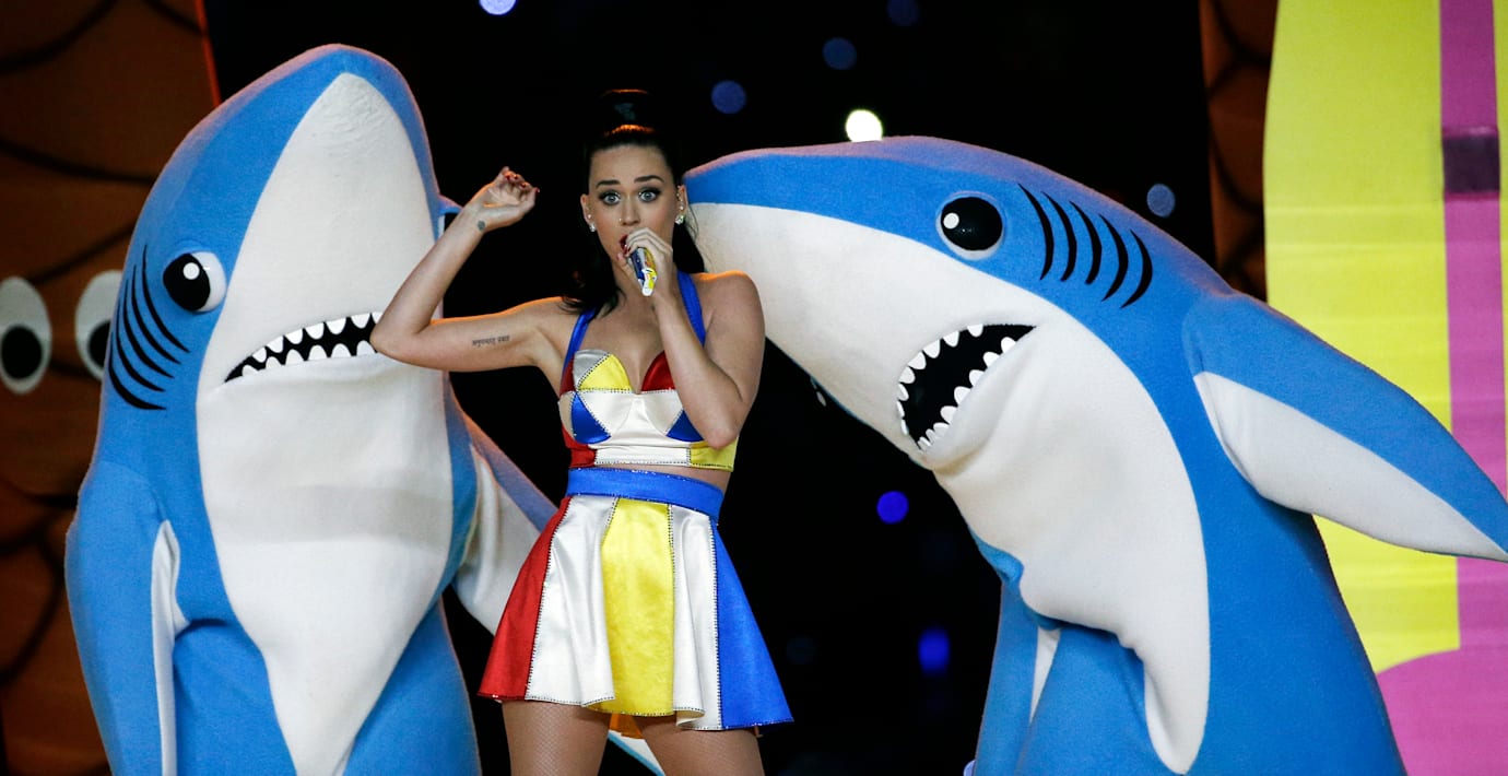 Under Superbowl-framträdandet blev Katy Perrys vänstra dansare, som var iklädd fullt täckande hajdräkt, en viral hit när denne för en stund glömde bort koreografin.
