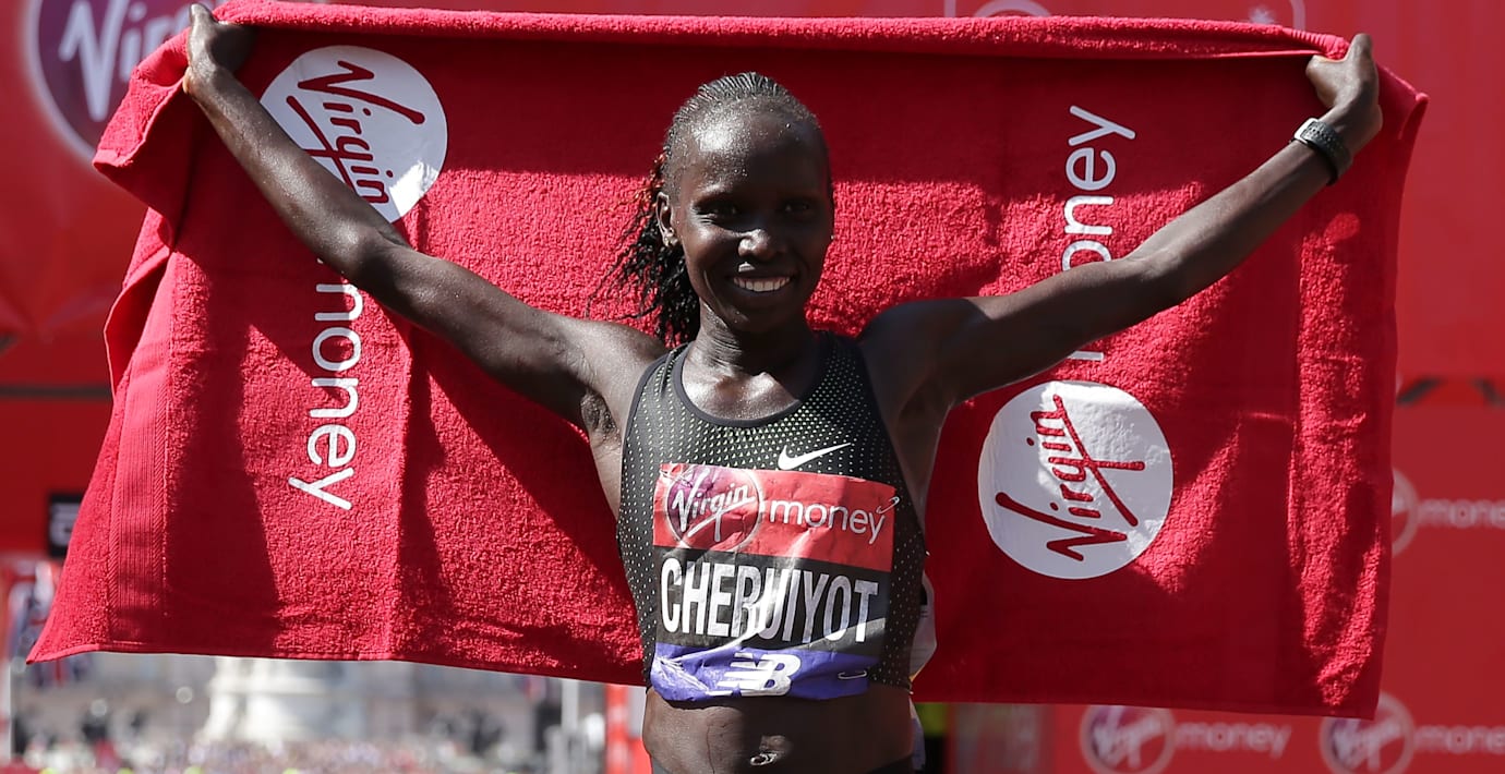 Cheruiyots segertid blev 2.18.13 – dryga tre minuter långsammare än Radcliffes rekord.
