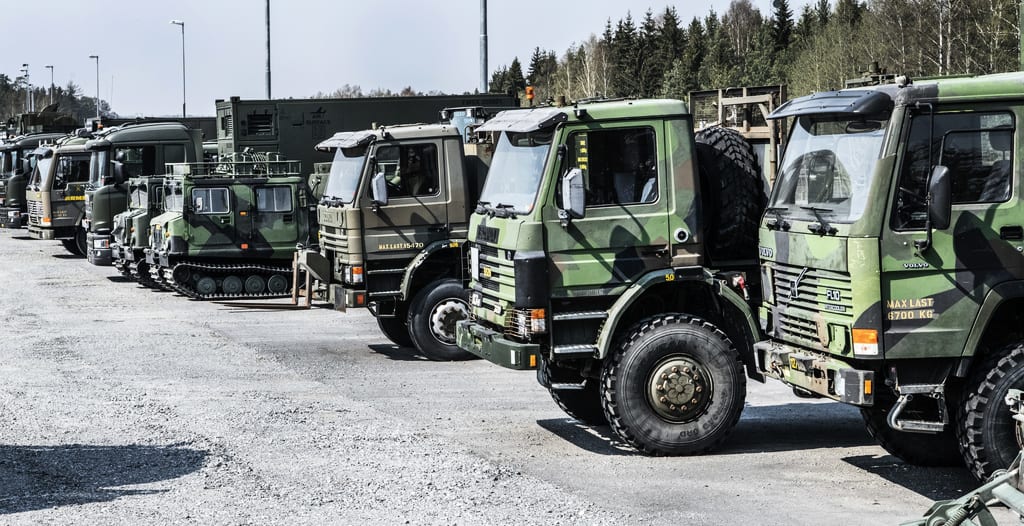 De cirka 70 fordonen är på väg till en årlig övning vid Marma skjutfält utanför Älvkarleby.
