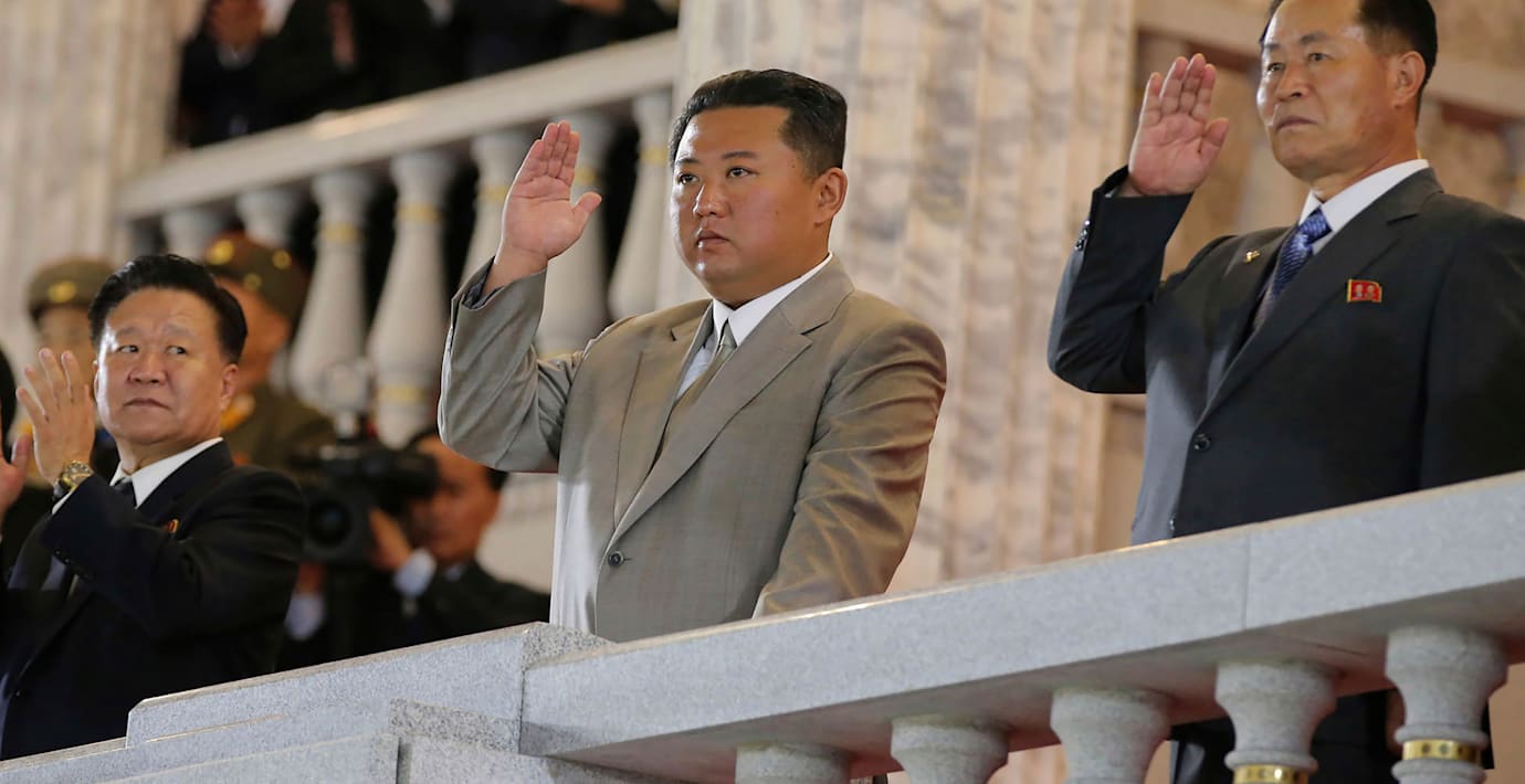 Nordkoreas ledare Kim Jong-Uns viktresa nedåt ser ut att fortsätta. Diktatorn närvarade när landet firade 73 år med en nattlig parad genom huvudstaden Pyongyang, natten mot torsdag.