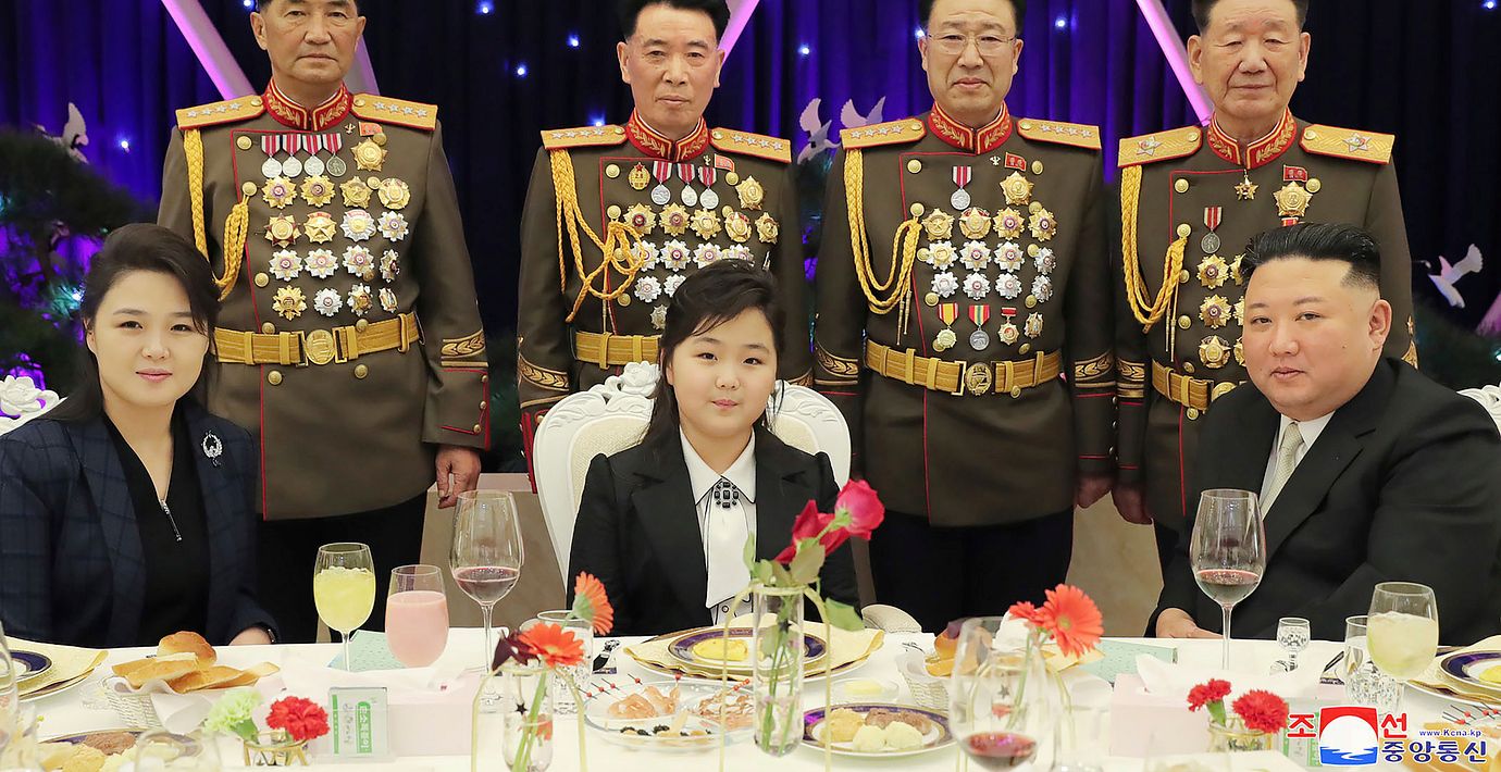 Nordkoreas ledare Kim Jong-Un tog med sig vad som tros vara dottern Kim Ju-Ae på en stor middag för att fira årsdagen av den nordkoreanska arméns grundande, skriver CNN. Bilder visar hur flickan, som tros vara i tioårsåldern, placerades i centrum, mellan Kim och hans fru Ri Sol-Ju.