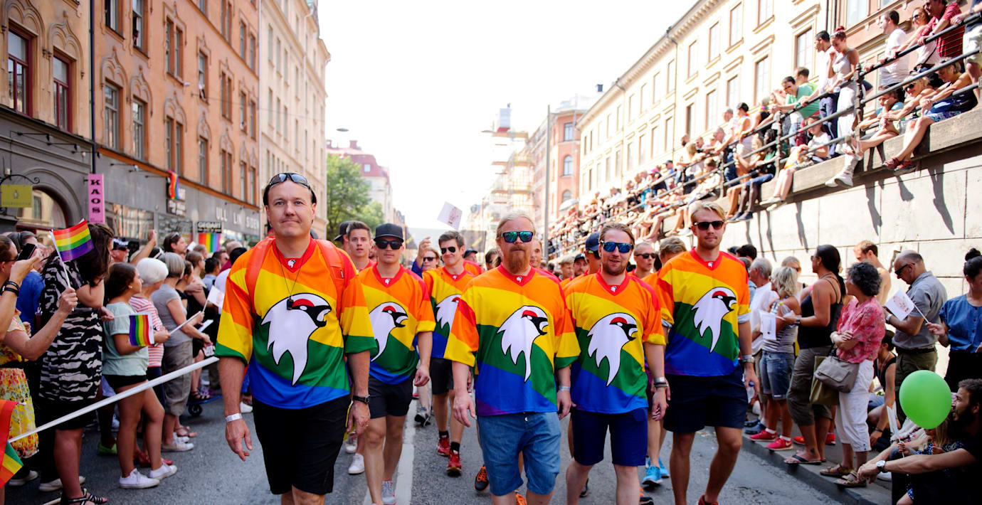 Kiruna IF började i juni resan mot att bli landets första HBTQ-certifierade idrottsklubb. Ishockeylagets regnbågsfärgade matchställ har varit en del av ställningstagandet. I dag gick 30 medlemmar ur föreningen i Pride-paraden i Stockholm.